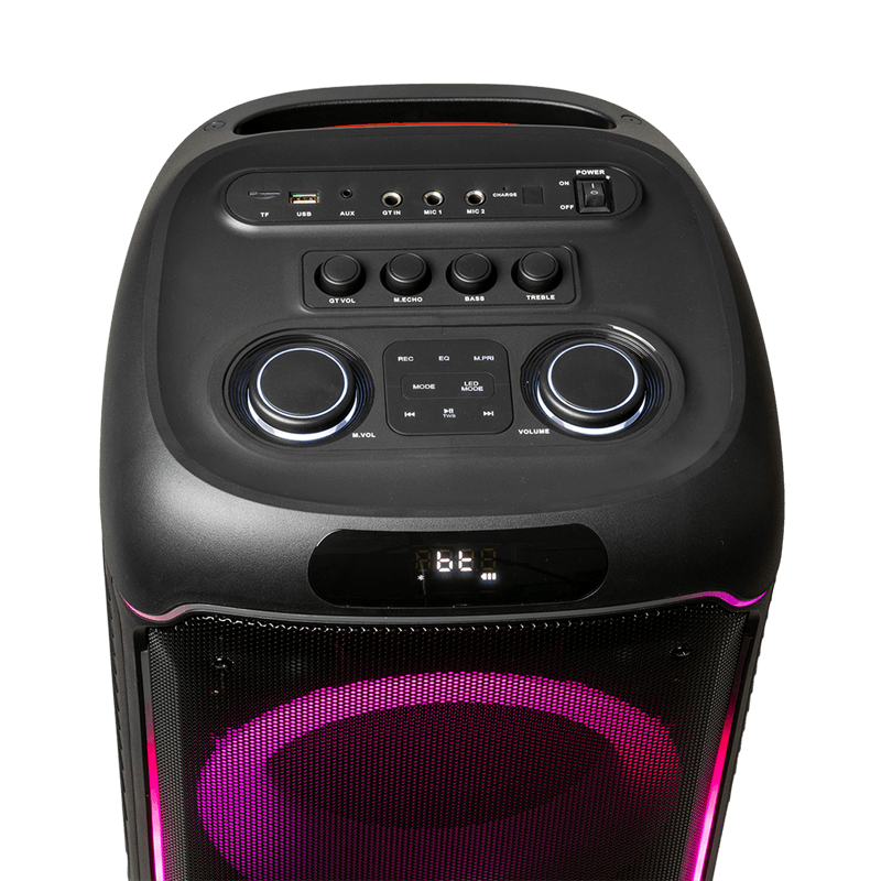 diseñado para dominar cualquier evento, desde grandes fiestas y sesiones de karaoke hasta presentaciones o reuniones al aire libre.
