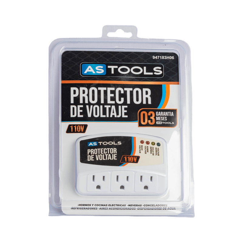 El Protector de Voltaje 110V AS Tools está diseñado para proteger equipos eléctricos y electrónicos frente a variaciones de energía. Incorpora un sistema de detección de bajo y alto voltaje, ayudando a prevenir daños causados por sobrecargas o caídas de tensión.