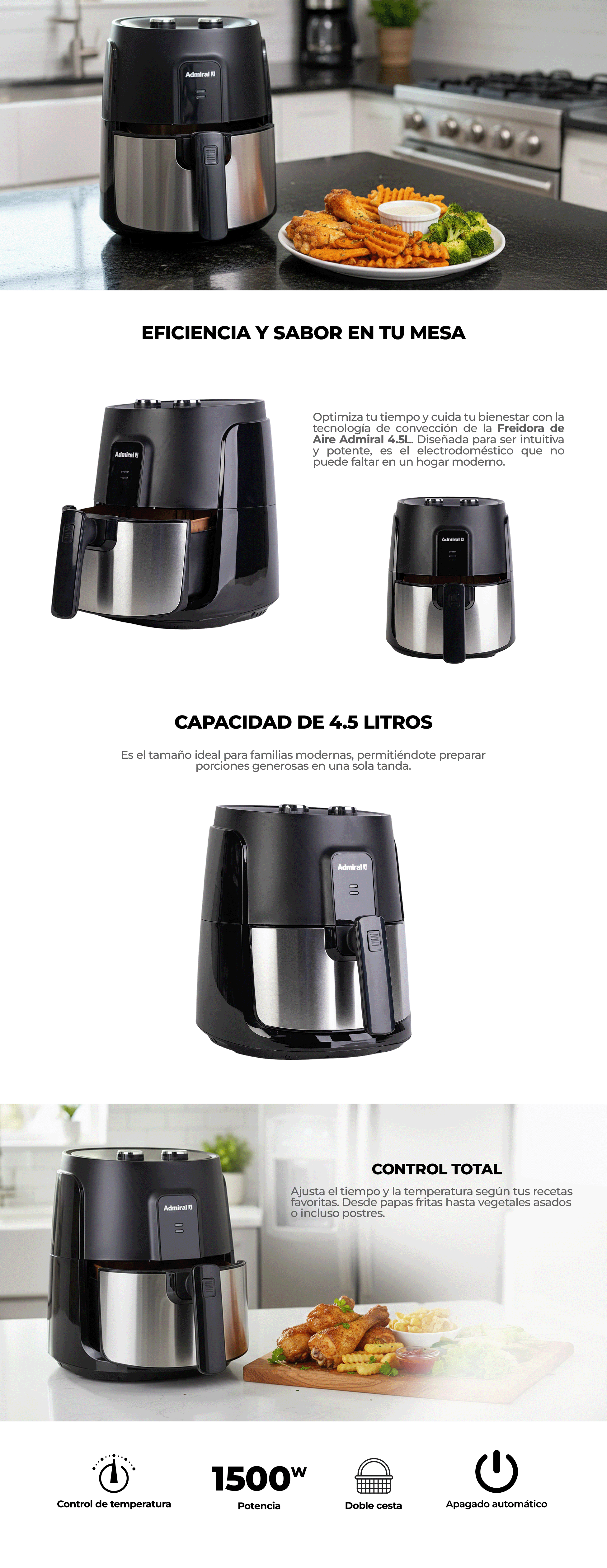 La freidora Admiral D402 combina practicidad, eficiencia y capacidad en un solo equipo, convirtiéndola en un aliado indispensable para tu cocina.
