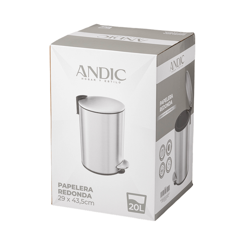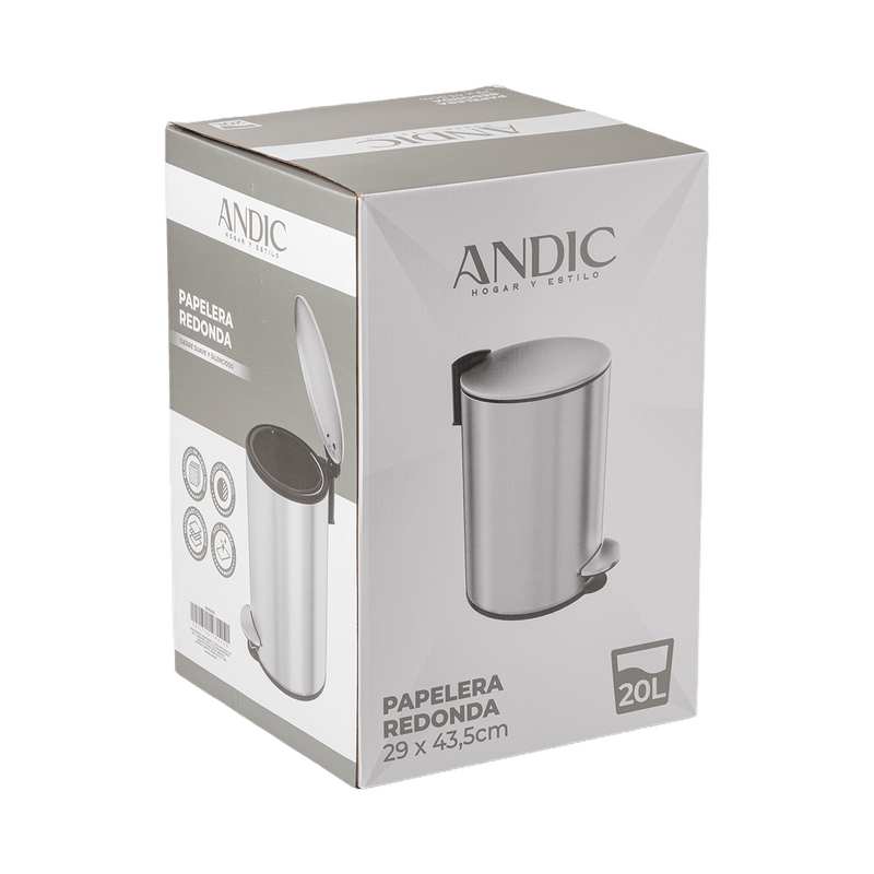 la papelera cilíndrica de acero inoxidable de 12 litros, diseñada para ofrecer funcionalidad, durabilidad y un diseño elegante en espacios modernos. Ideal para cocinas, oficinas, baños o áreas comunes, esta papelera combina un formato compacto con un sistema de cierre suave y silencioso que mejora la experiencia de uso diario. Su estructura en acero inoxidable con acabado satinado aporta un aspecto limpio y profesional, además de ser resistente al uso continuo. Gracias a su capacidad de 20 litros, es perfecta para el manejo eficiente de residuos sin ocupar demasiado espacio.