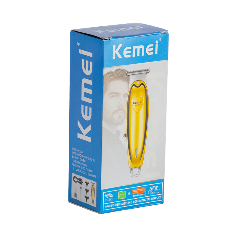 La KM-732 cuenta con un interruptor de encendido intuitivo y una interfaz USB universal que facilita su uso y carga. Su cabezal profesional está diseñado para deslizarse suavemente sobre la piel, evitando irritaciones y tirones. Además, su estructura compacta y ligera te permite maniobrar con precisión en cada zona, desde la barba hasta el cabello.