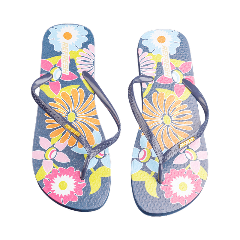 Refresh diseña estas cholas pensando en la mujer moderna que exige comodidad y glamour al mismo tiempo. Este modelo te ofrece una explosión de diseño estampado vibrante que captura miradas y refleja tu personalidad audaz. Escoge tu favorita y deja que tus pies hablen de tu increíble sentido de la moda.