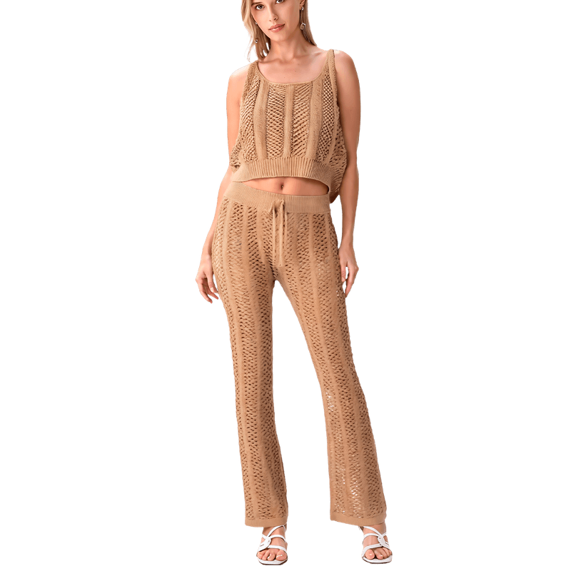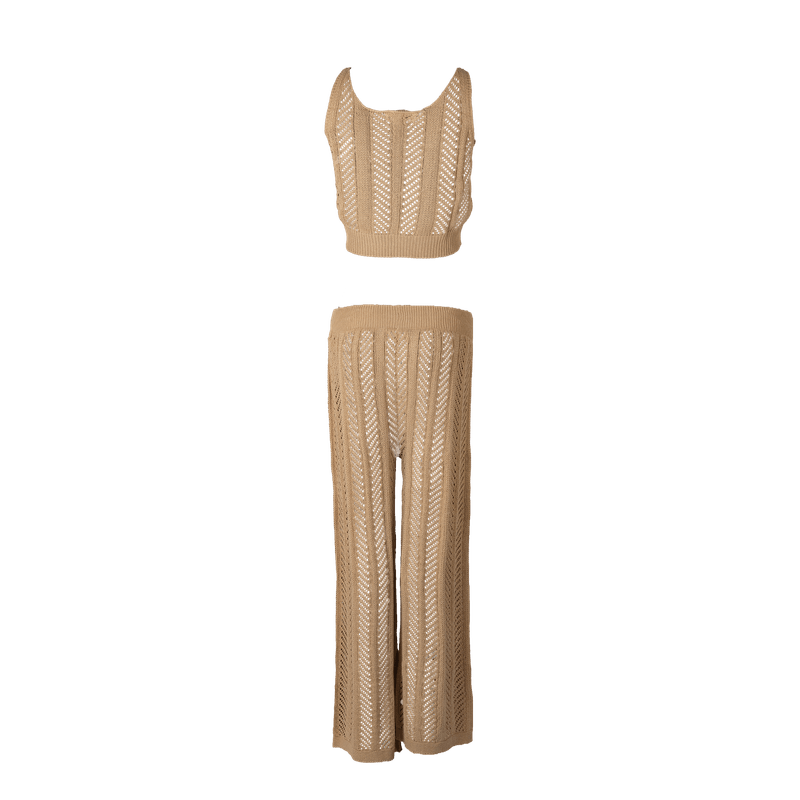 Conjunto Playero de Top y Mono Tejido para Dama Refresh A212 Beige S/M