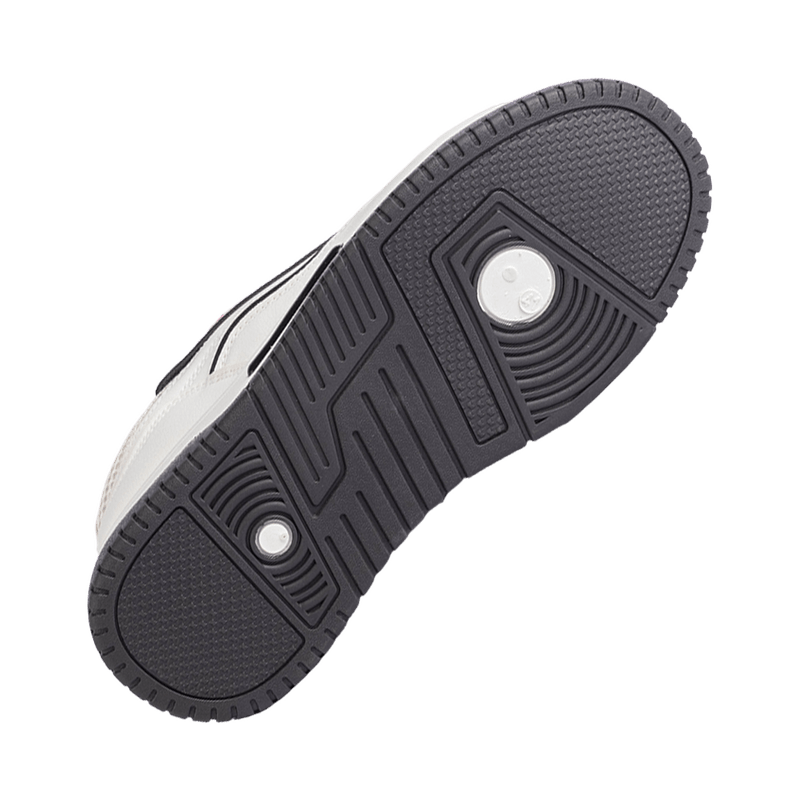 El cuerpo principal, robusto y fácil de limpiar, proporciona una silueta clean y duradera, enmarcada por sutiles ribetes negros que añaden un toque de definición audaz. Las amplias secciones de malla blanca en los laterales y la puntera aseguran la transpirabilidad y refuerzan la estética retro-runner, manteniendo tus pies cómodos mientras conquistas tu día.