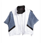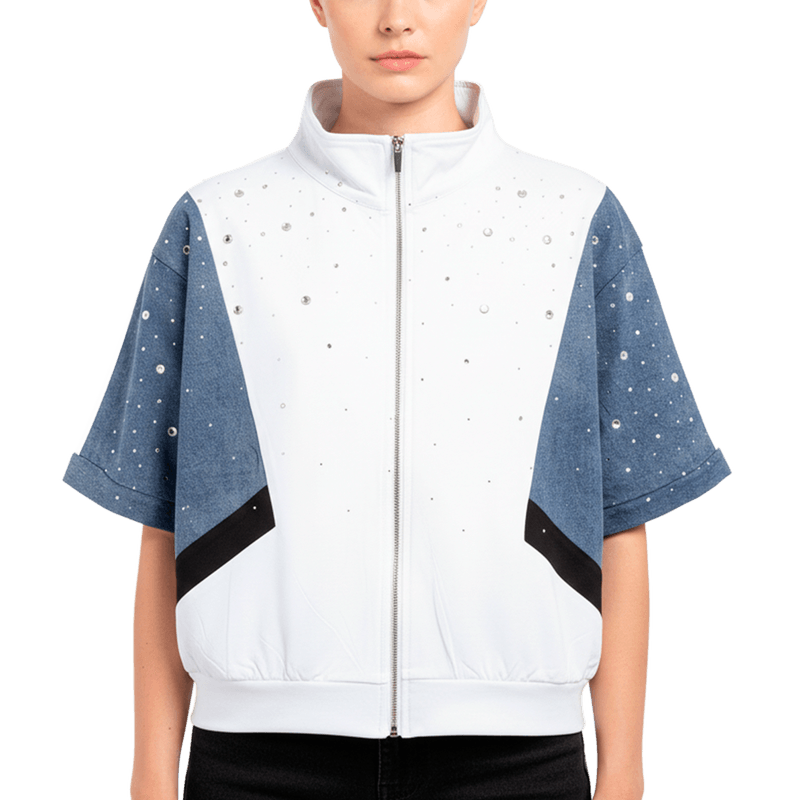 Prepárate para destacar con una prenda que juega con la combinación de texturas. El contraste visual creado por sus paneles te asegura un look dinámico y vanguardista. Cada detalle ha sido cuidadosamente seleccionado para ofrecer una estética moderna y vibrante, ideal para la mujer que busca una moda con carácter. El diseño a bloques convierte esta chaqueta en una obra de arte portable.